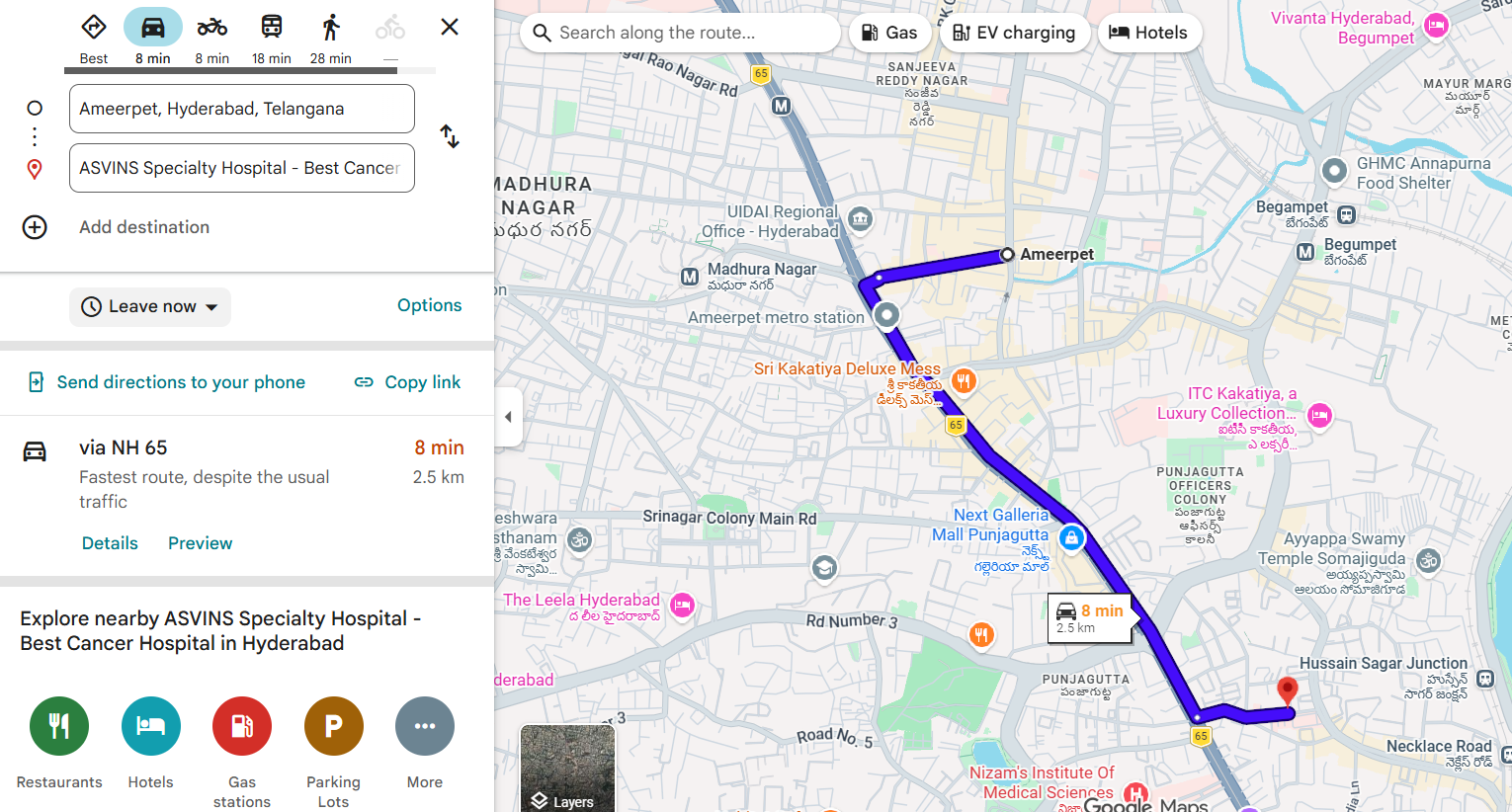Starting Point: Ameerpet, Hyderabad, Telangana