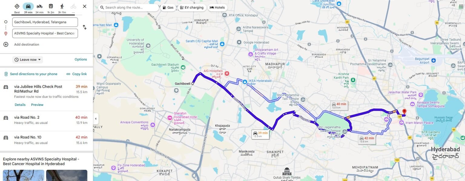 Starting Point: Gachibowli, Hyderabad, Telangana