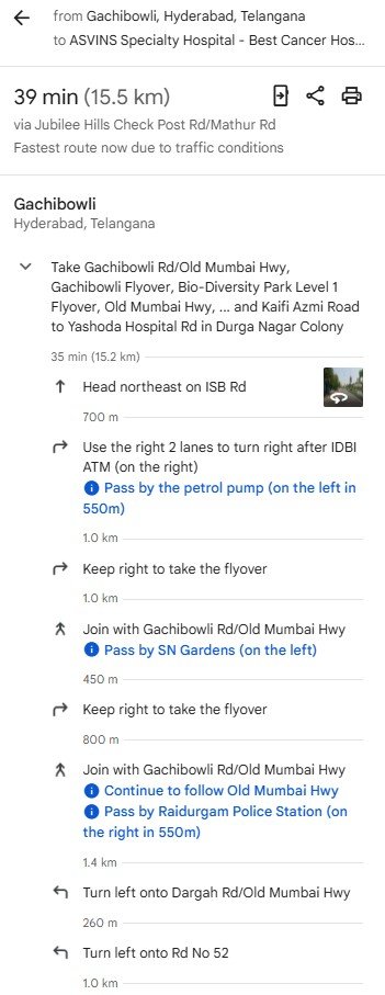 - Join Gachibowli Road / Old Mumbai Highway – 240 m