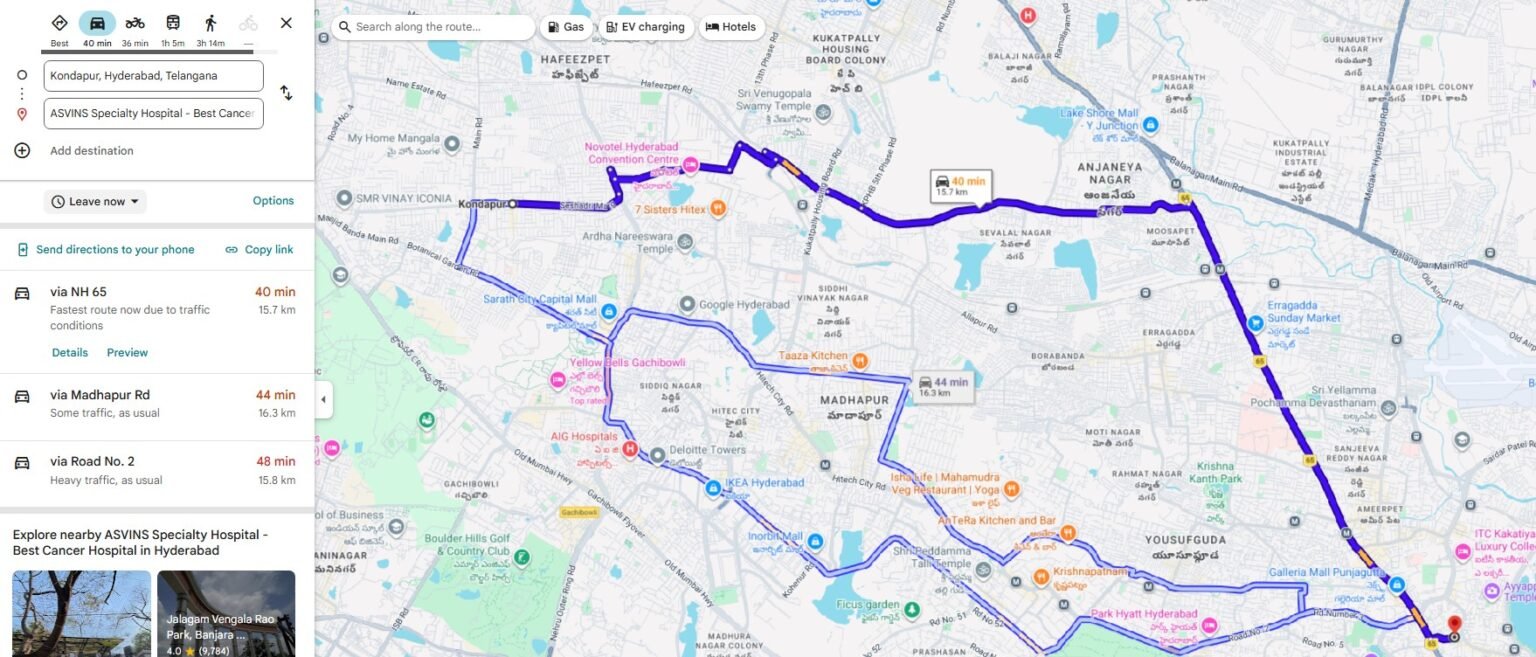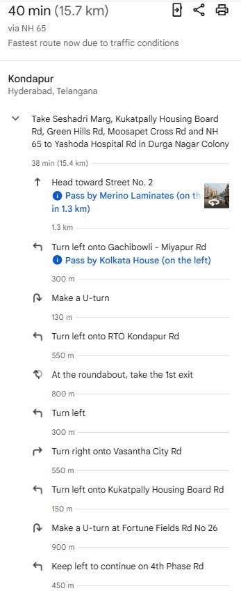 - Turn left to stay on Madhapur Road (Pass Budget Car) – 800 m