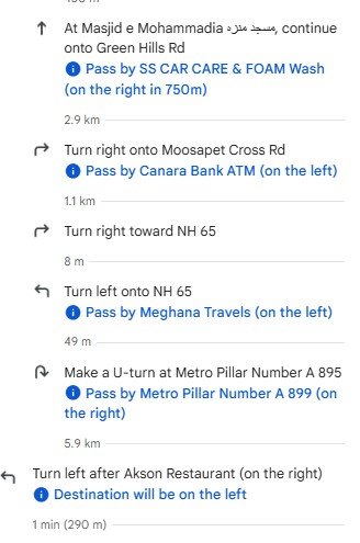 - Turn left onto Srinagar Colony Main Road (Pass Yashdeep Super Bazar) – 1.6 km