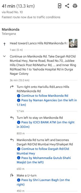 - Head toward Lanco Hills Road / Manikonda Road – 5 m